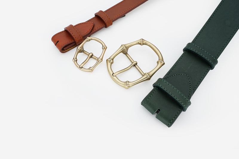 Découvrez notre ceinture en cuir vert avec notre Grande Boucle BAMBOU. Vous pouvez compléter la ceinture en achetant une seconde lanière à Pressions 40mm, d’une autre couleur…